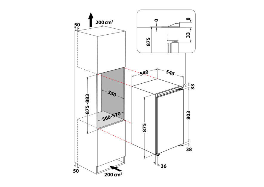 - Maße (HxBxT): 875 x 540 x 545 mm