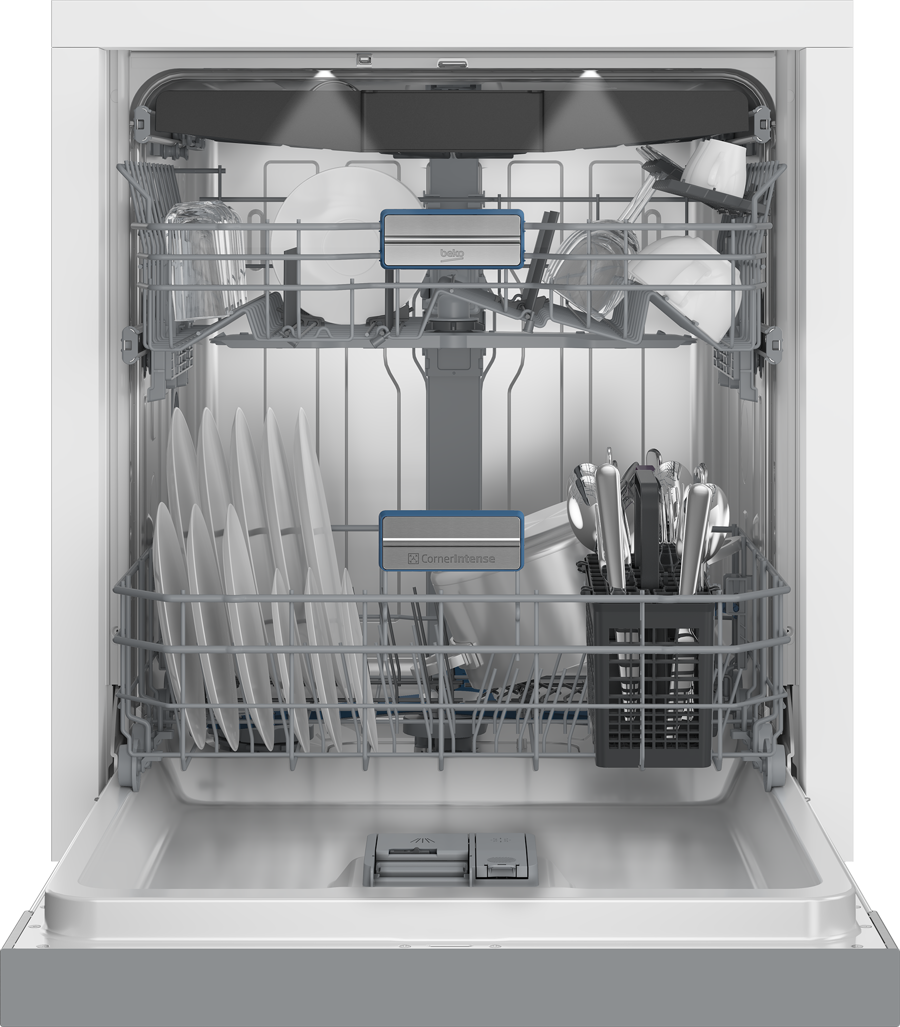 - Tassenablagen – Anzahl: 2 Umklappbare Tellerreihen im Unterkorb: 4