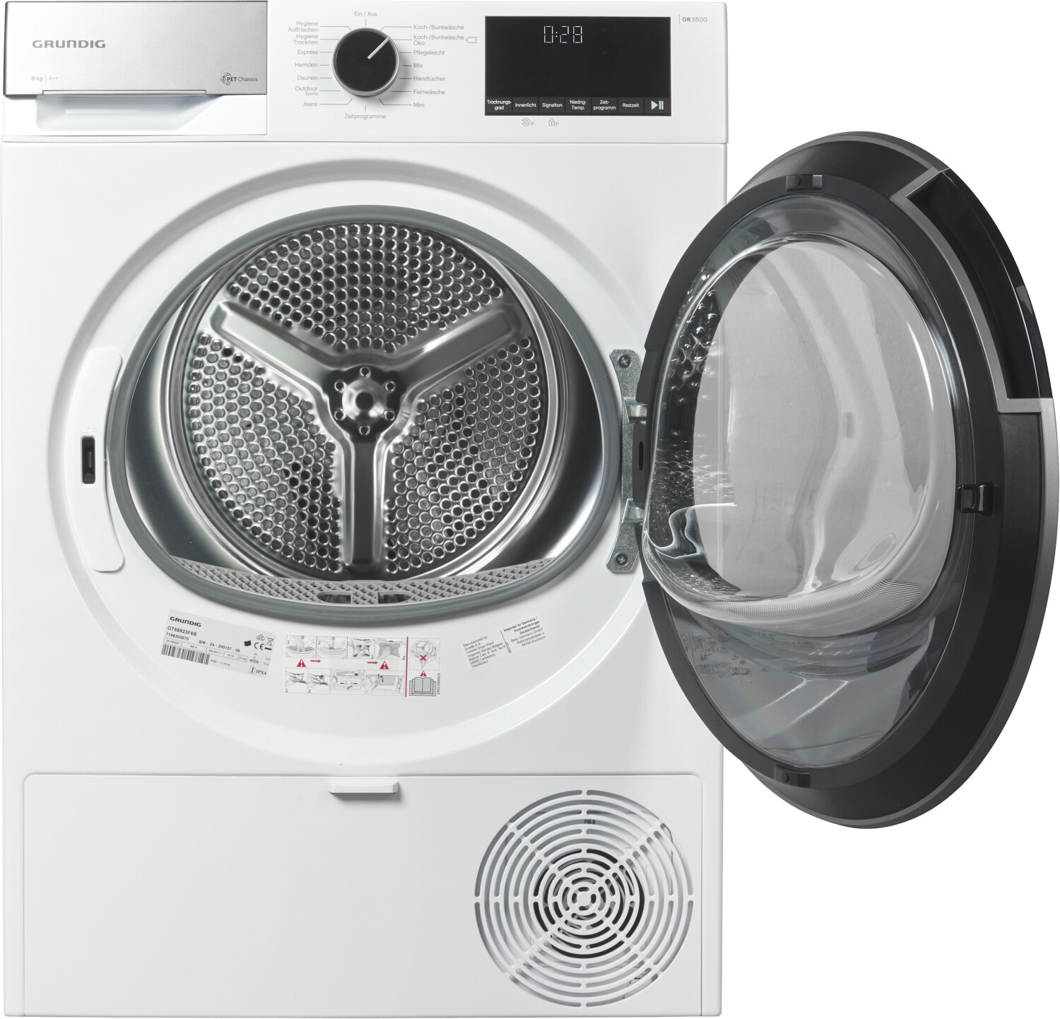 - Grundigs fortschrittliche Wärmepumpen-Technologie mit relativ niedrigen Temperaturen von 60°C ermöglichen effiziente Trocknung und sanfte Wäschepflege. Die Wärmepumpentrockner kondensieren das Wasser, wenn die warme Luft auf die kühle Verdampferplatte trifft. Die zusätzliche Wärme wird innerhalb des Systems zurückgeführt, um es noch effizienter zu machen.
