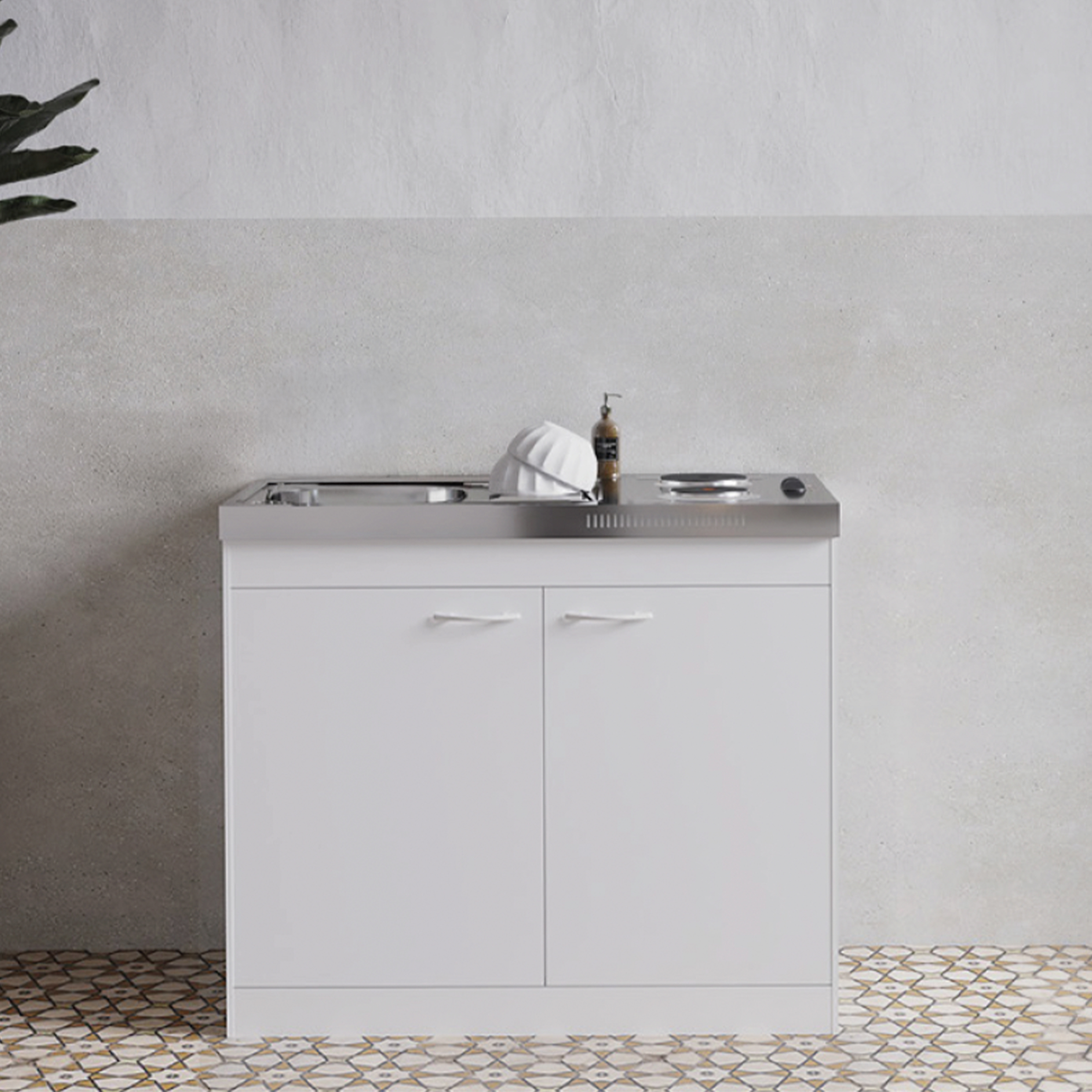 - Miniküche 100 cm - Korpus und Fronten: weiß - Wechselseitig aufbaubar
