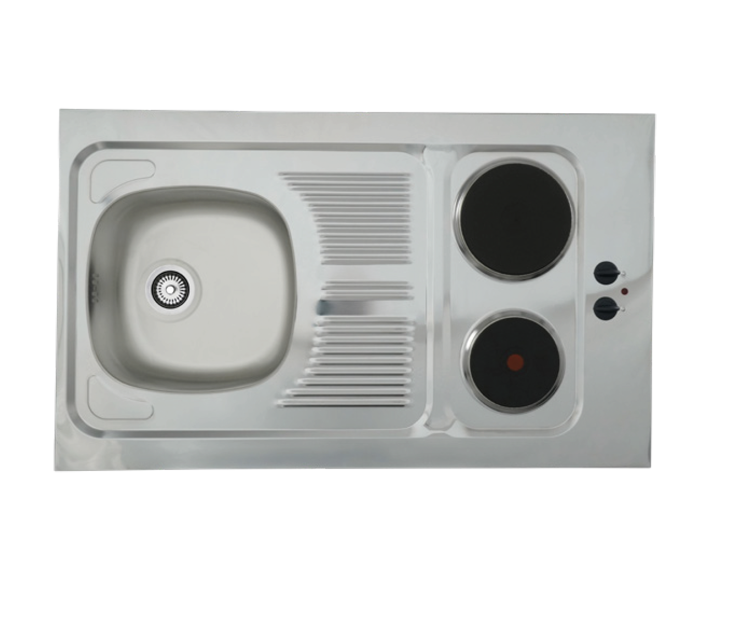 - Mit integrierter Edelstahlkochmulde: 2 Platten - 6 Leistungsstufen
