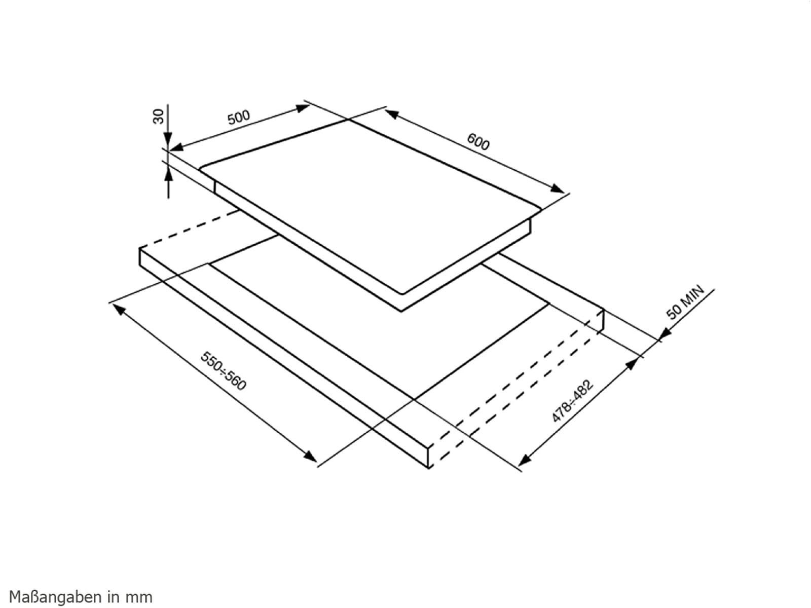 - Ausschnittmaße: 550-560 x 478-482 mm (B x T)